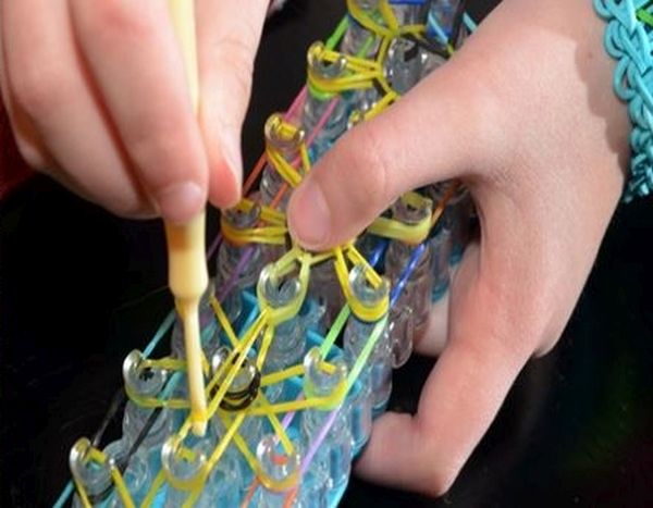 V druhej fáze sa gumičky háčikom podľa návodu prepletajú.